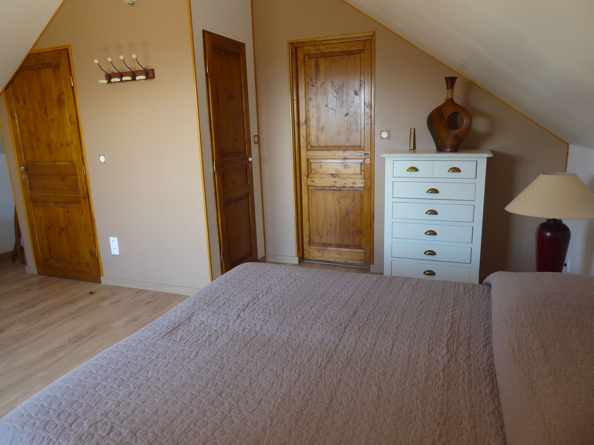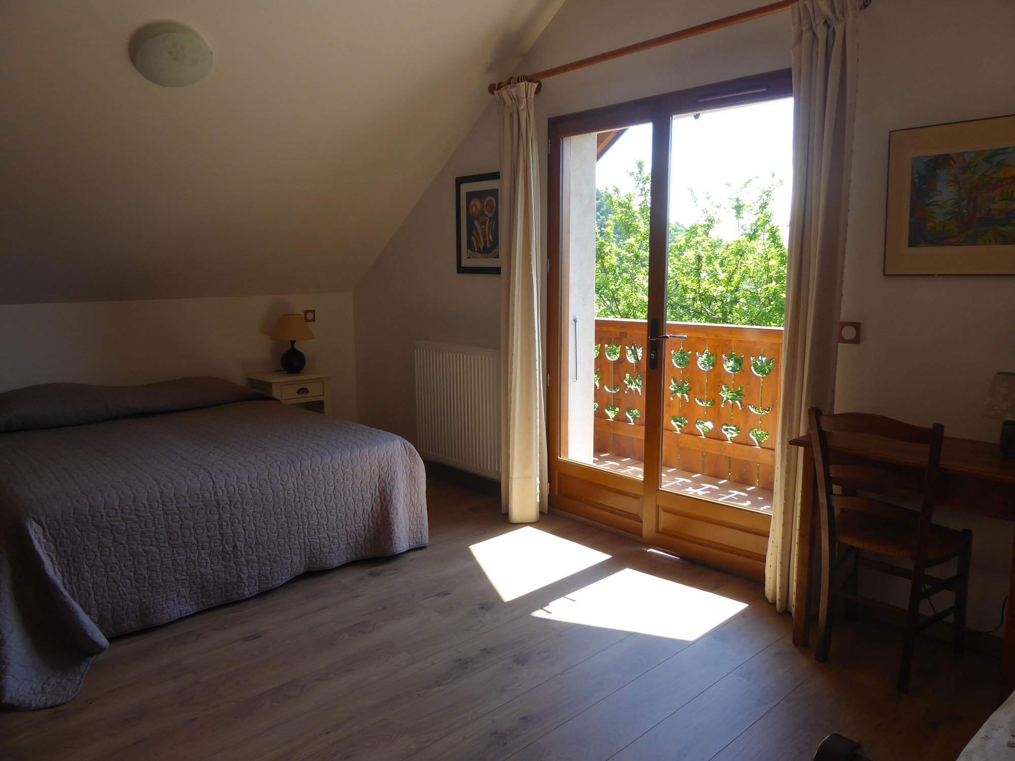 La chambre Vercors est située au premier étage de la maison indépendante. Elle possède un agréable balcon vous permettant d’admirer la vue sur le Vercors, le plateau Matheysin et les montagnes environnantes. Elle dispose d’un lit double séparable, d’un lit simple et d’une salle de douche privative et des toilettes séparées.